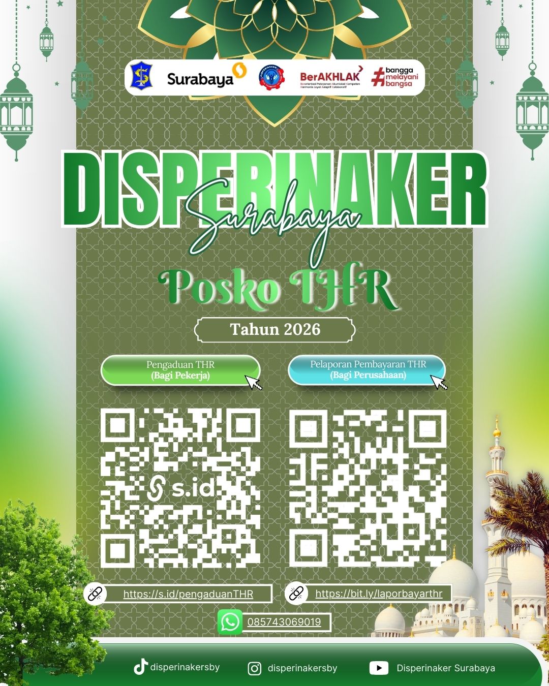 Apabila ada pertanyaan-pertanyaan seputar informasi tersebut, Dinas Tenaga Kerja Kota Surabaya membuka posko untuk konsultasi dan mengadu masalah THR (Tunjangan Hari Raya). Silahkan download dan isi form pengaduan berikut ini. klik to download